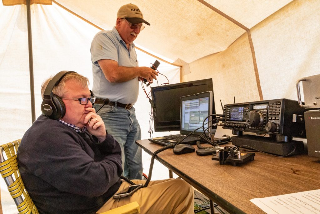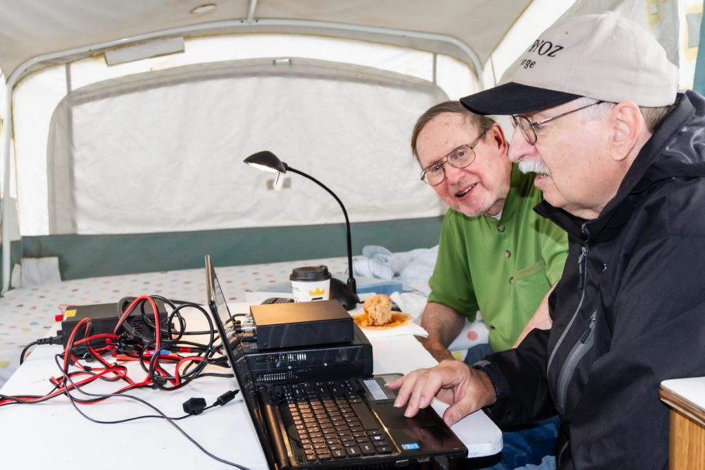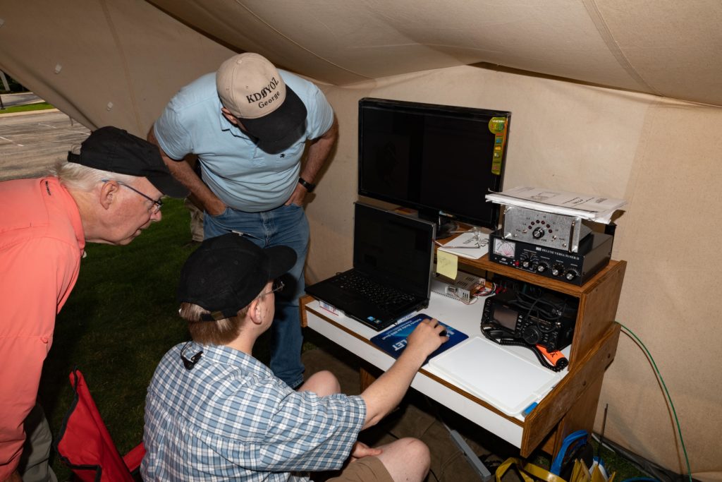 Field Day is ham radio’s open house! Every June, more than 40,000 hams throughout North America set up temporary transmitting stations in public places to demonstrate ham radio’s science, skill and service to our communities and our nation. It combines public service, emergency preparedness, community outreach, and technical skills all in a single event. Members of the public are welcome to come and learn about Ham Radio with voice, digital, morse/cw, and mobile stations being operated, and even try it out as guest radio operators under expert guidance at our “Get On The Air” station during this free event!